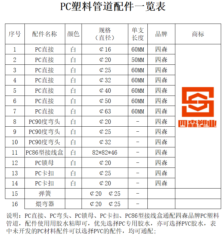 广东四森科技有限公司成立于2010年,拥有十年专注挤出PC材料(聚碳酸脂)塑胶硬管材,型材生产实力厂家。是一家集设计研发,生产制造销售一体的高新科技技术企业;本公司发展理念主要以生产环保安全型产品,经过长期研发与改进创新,开发出新型建筑工程用的塑料管道 ,其经销批发的产品有四森塑业电工套管、四森塑业电力通信管系列、四森塑业农用管系列、四森塑业消防管系列等系列产品,产品畅销全国各地消费者市场,在消费者当中享有较高的地位,厂家直销、品种齐全、价格合理。重信用、守合同、保证产品质量,以多品种经营特色和薄利多销的原则,赢得了广大客户的信任。其经营的四森塑业产品在2013年起新建地铁站项目,市政工程,建筑楼房等工程项目中已广泛选用;主要产品有:低无卤PC绝缘电工管、PC电力阻燃管、PC绝缘消防管、PC改性工程塑料管等、PC直接,PC线盒、PC弯头、PC锁母、PC卡扣等配套;。
